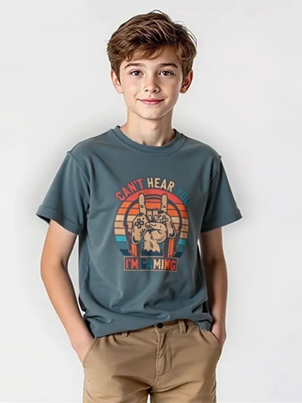 Boys’ Oversized Cotton T-Shirt with I’m Gaming Print