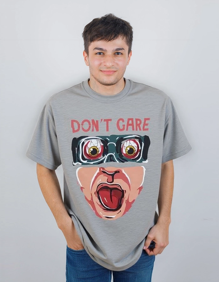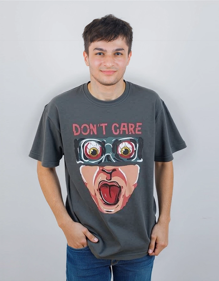 A “Don’t Care” print on the front adds value to the T-shirt.
